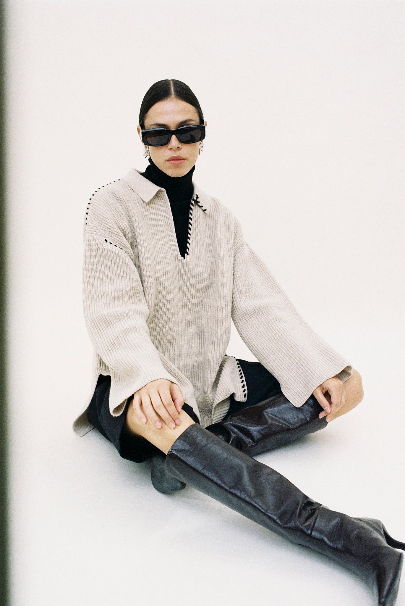 The yarn itself also carries a story: Anastasia, a passionate knitter, often reuses yarn from her own collection or rescues high-quality wool from jumpers beyond repair. That second-hand yarn was used to embellish each dariadéh knit, giving it texture, depth, and a new life.