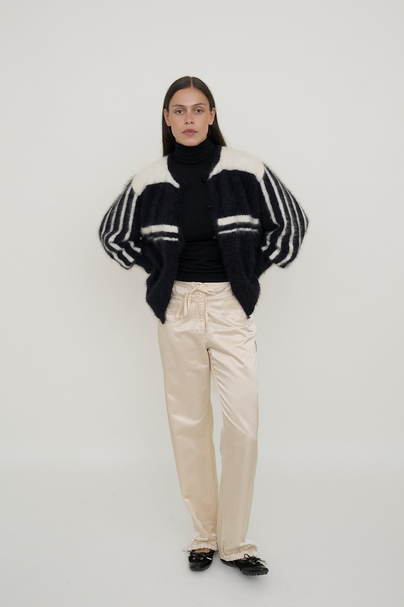 Our model is 1.74m tall and usually wears a cardigan in size 36-38.