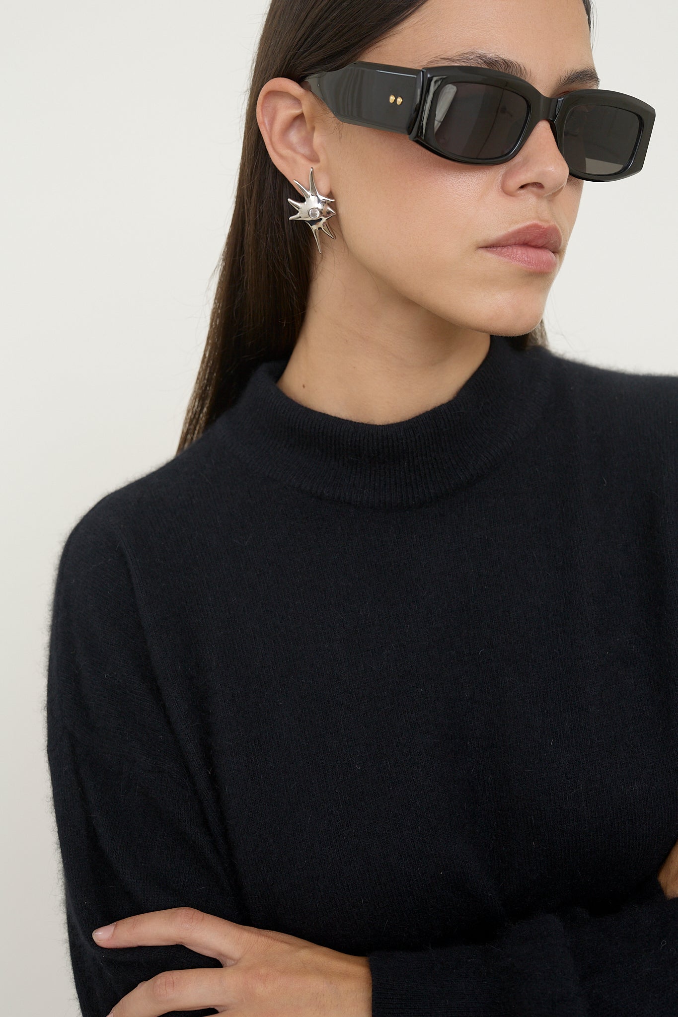 Spun from a soft, fluffy knit, this black jumper is designed with a classic turtleneck collar. The relaxed silhouette makes it an essential and comfortable layering piece for cooler days.