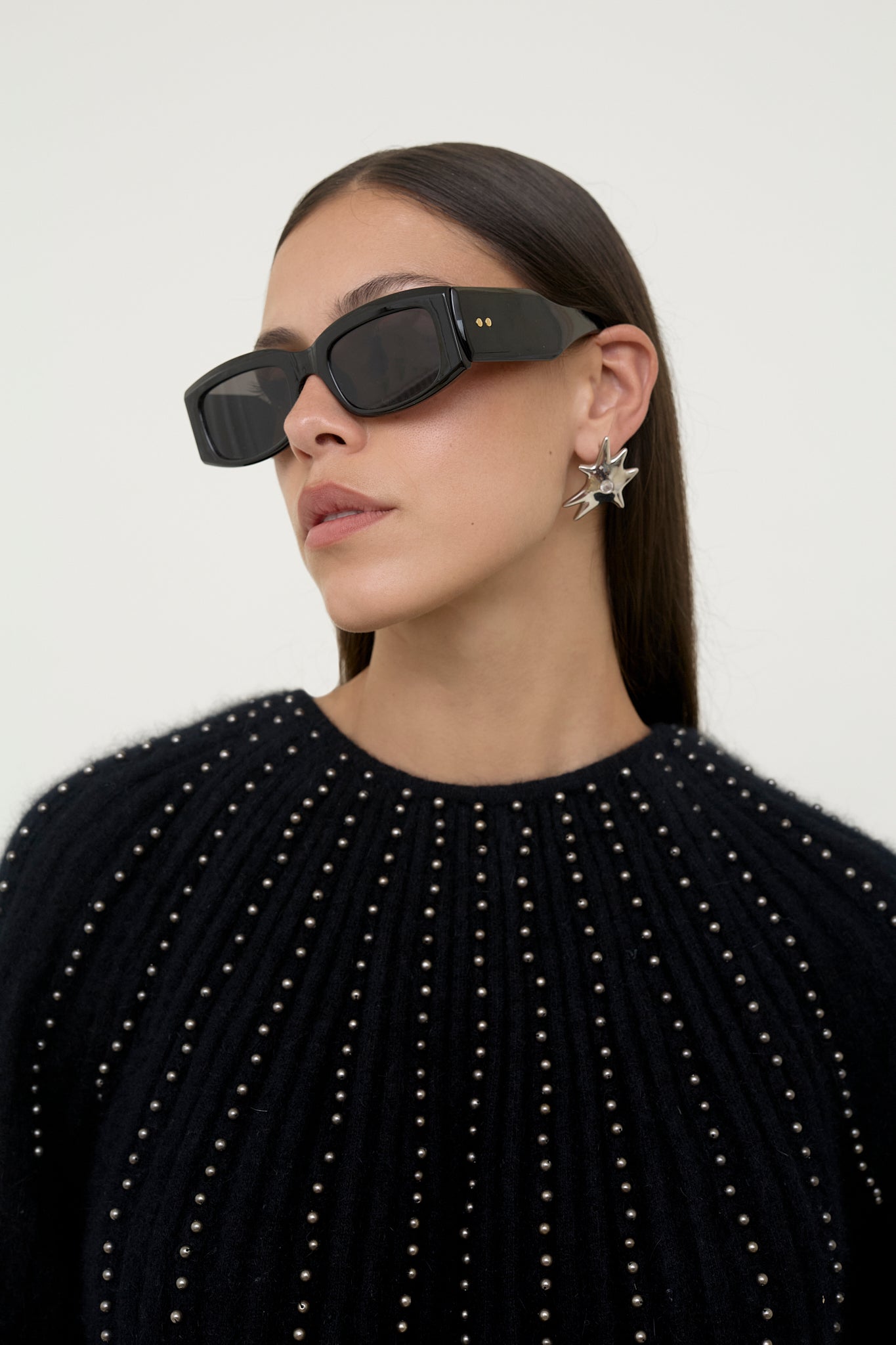 Crafted from a soft angora and wool blend, this vintage jumper is detailed with delicate vertical studs. The design is finished with voluminous balloon sleeves for a modern silhouette.